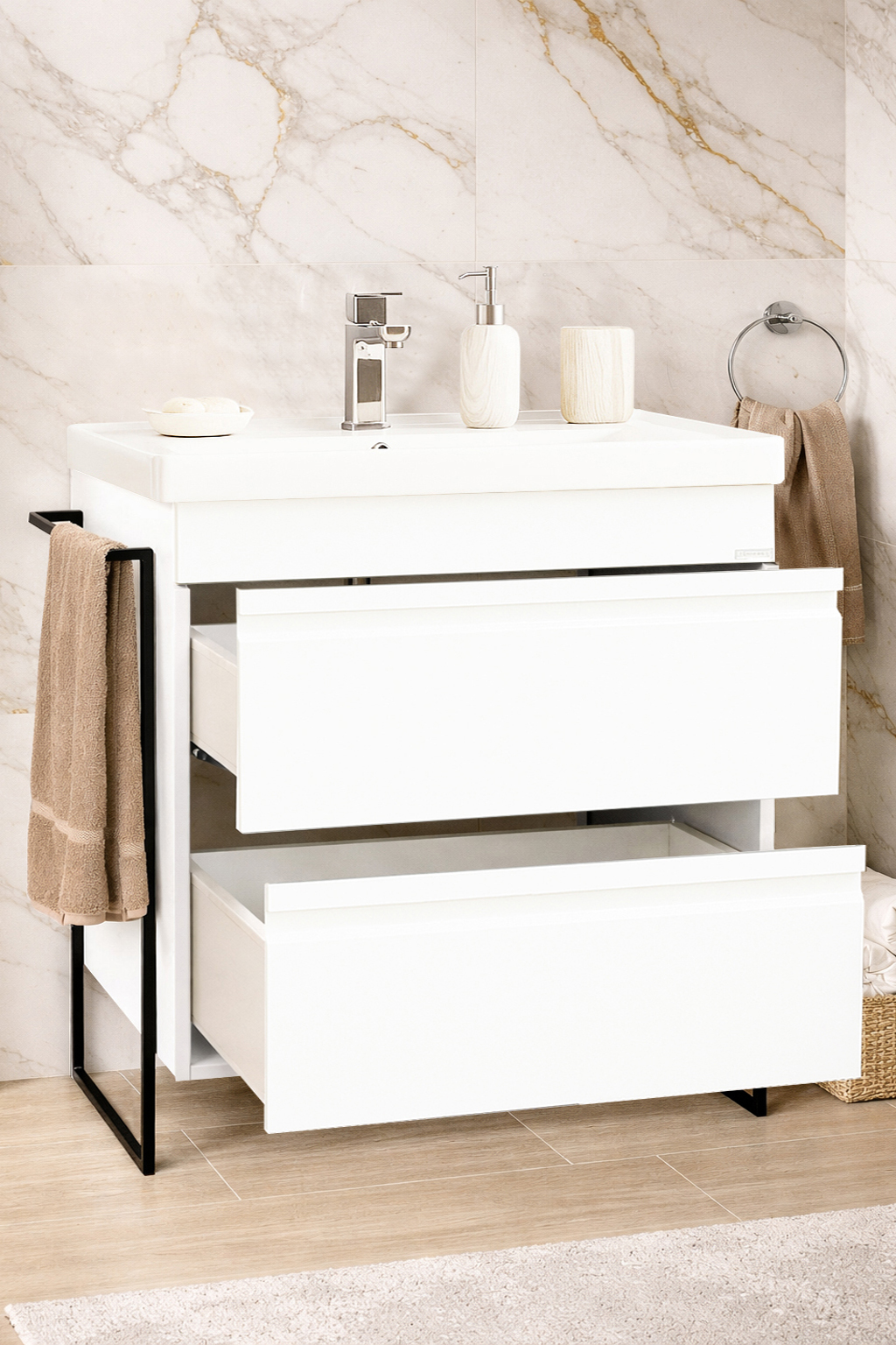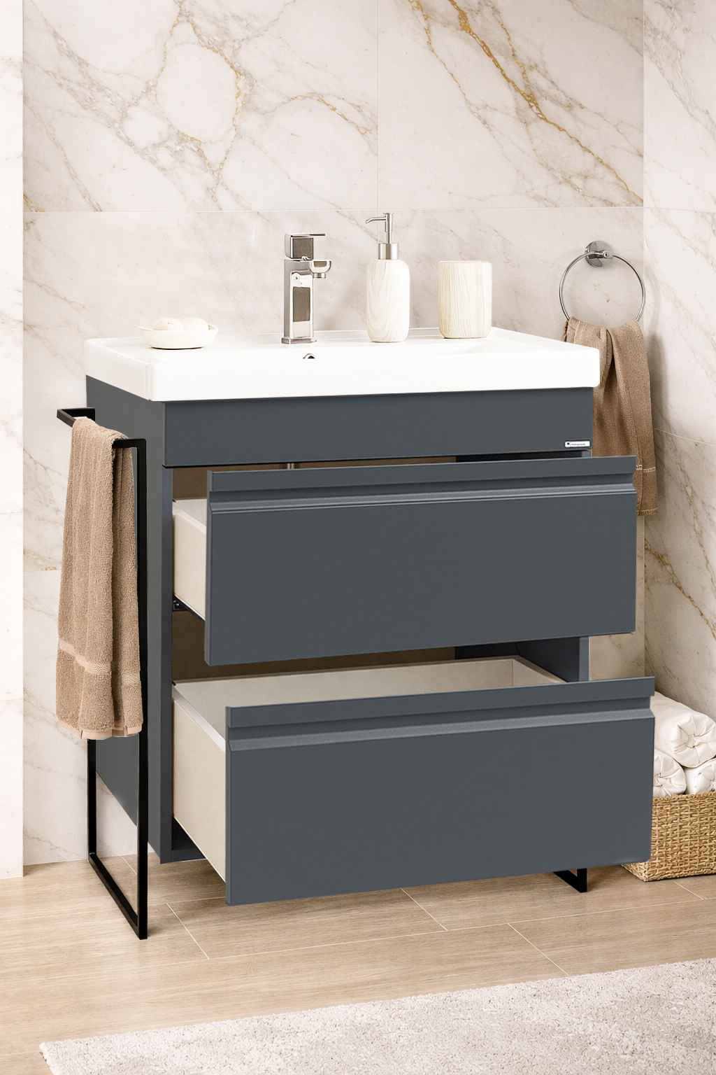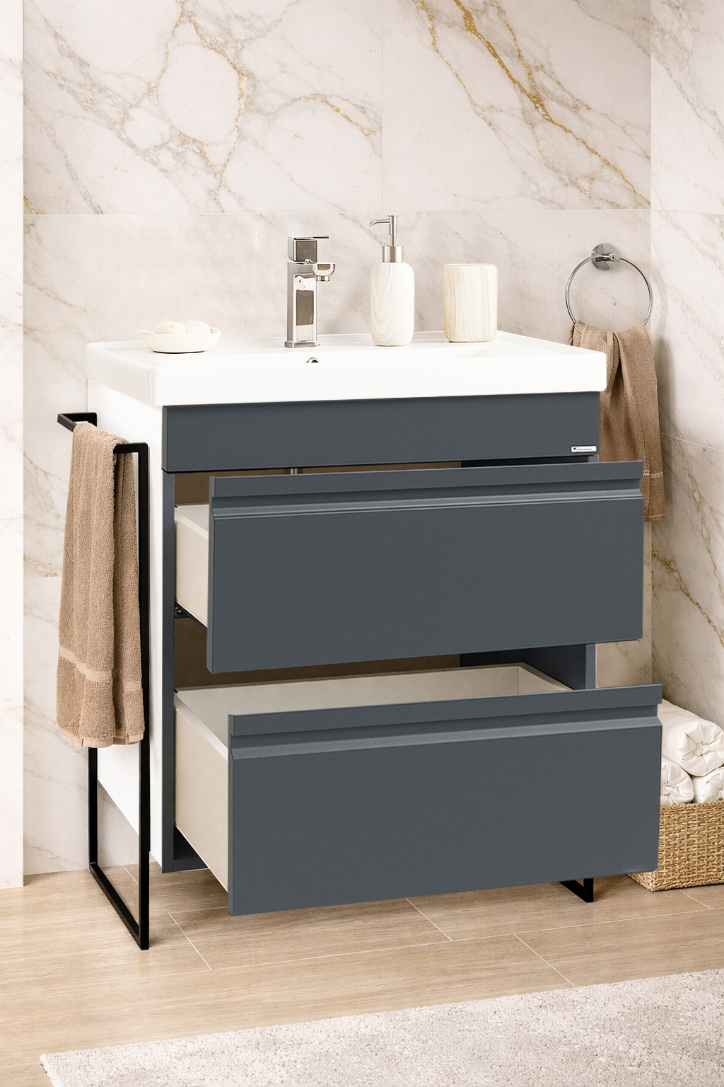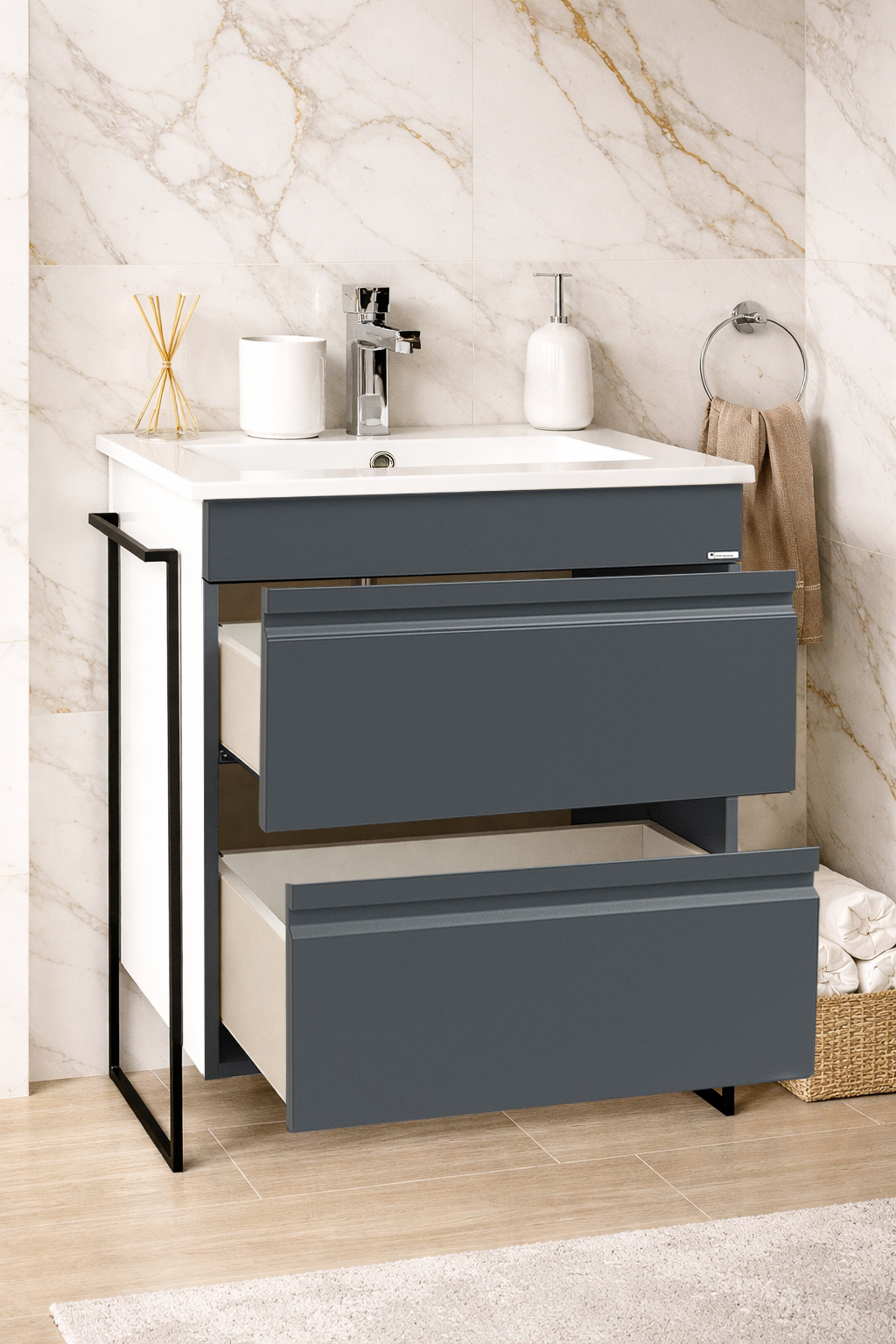 Îți punem la dispoziție o varietate largă de culori și finisaje pentru mobilierul de baie și bucătărie, concepute să se potrivească perfect oricărui stil de design interior. Fie că preferi tonuri neutre și rafinate sau culori îndrăznețe și contemporane, fiecare variantă este selectată cu grijă pentru a satisface toate gusturile și preferințele. Alături de noi, fiecare piesă de mobilier reflectă personalitatea și stilul tău unic!
