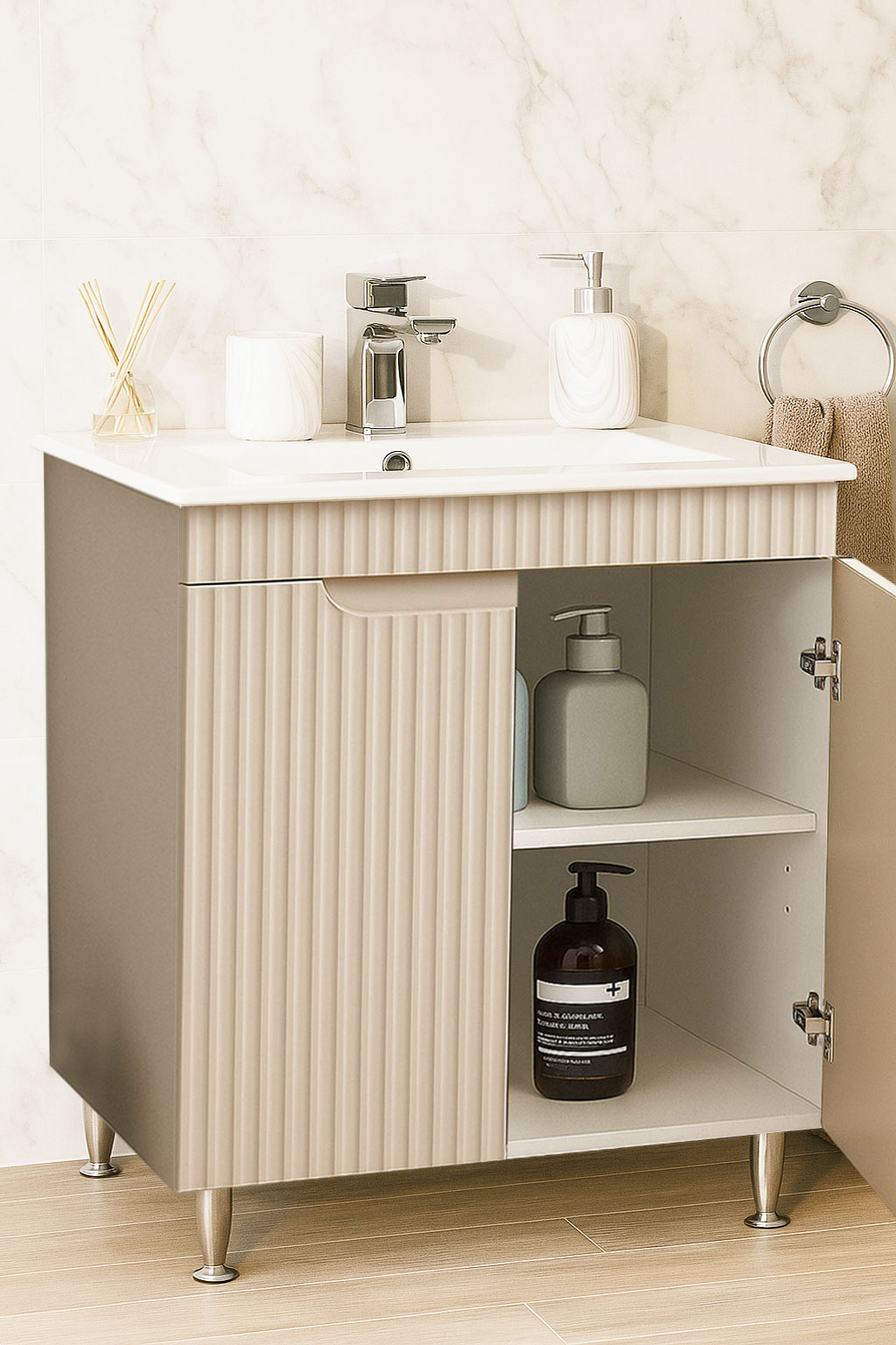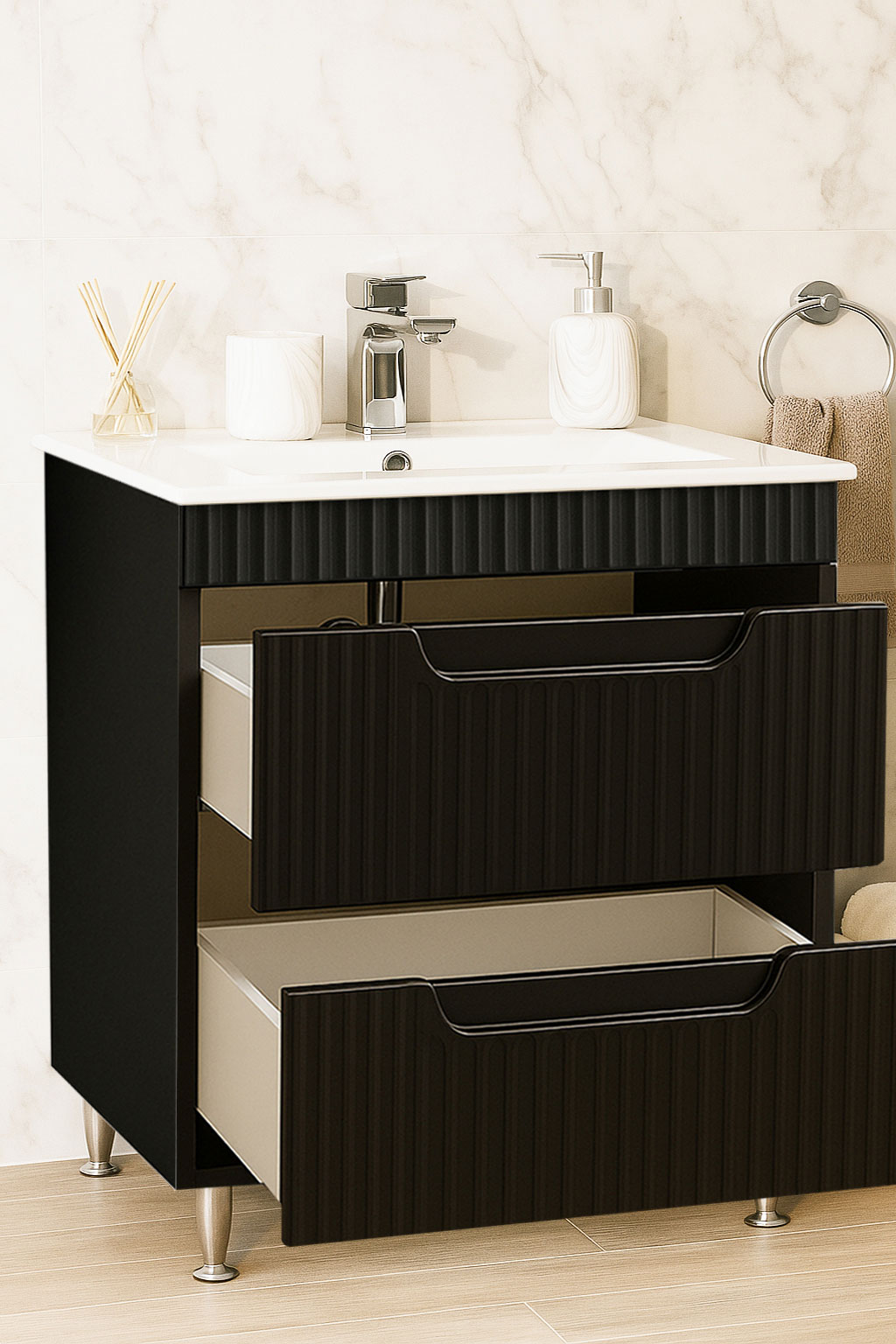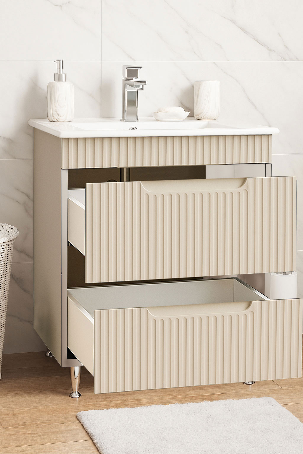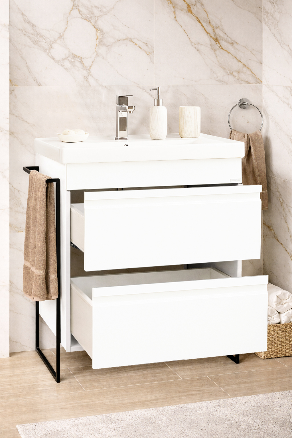 Îți punem la dispoziție o varietate largă de culori și finisaje pentru mobilierul de baie și bucătărie, concepute să se potrivească perfect oricărui stil de design interior. Fie că preferi tonuri neutre și rafinate sau culori îndrăznețe și contemporane, fiecare variantă este selectată cu grijă pentru a satisface toate gusturile și preferințele. Alături de noi, fiecare piesă de mobilier reflectă personalitatea și stilul tău unic!