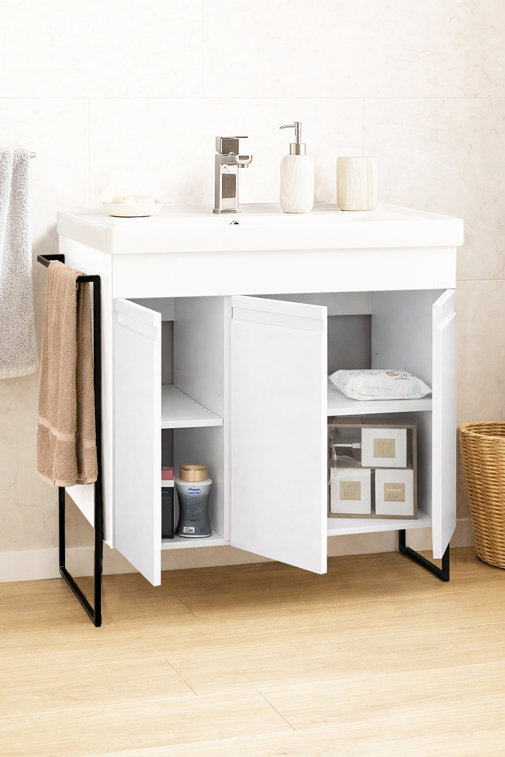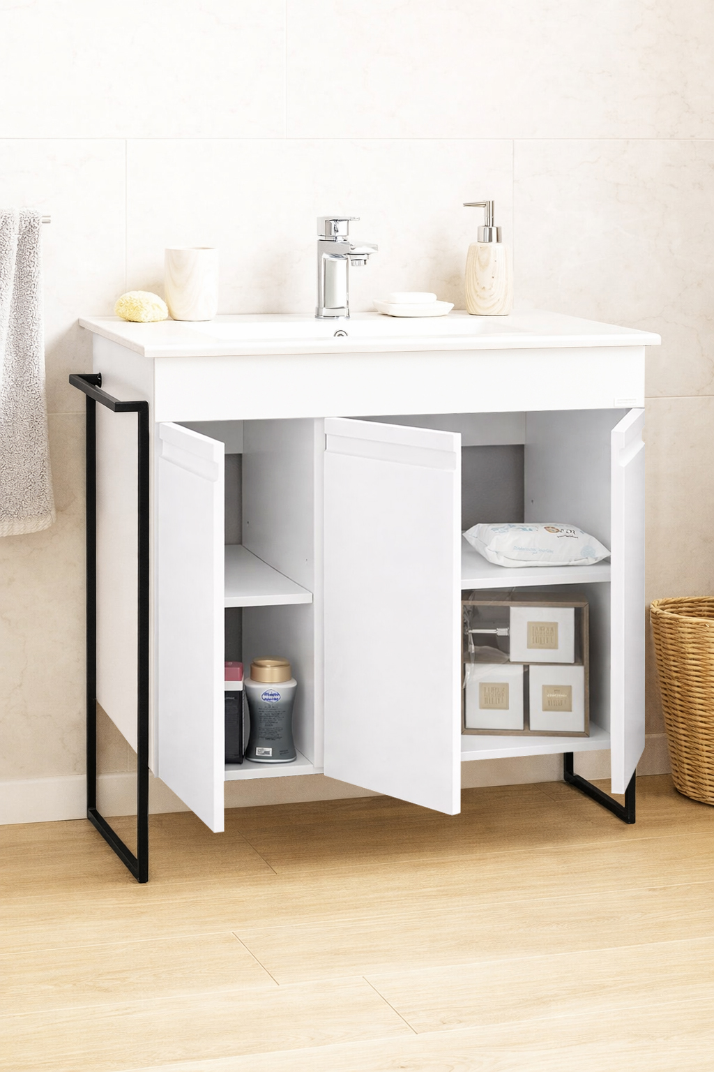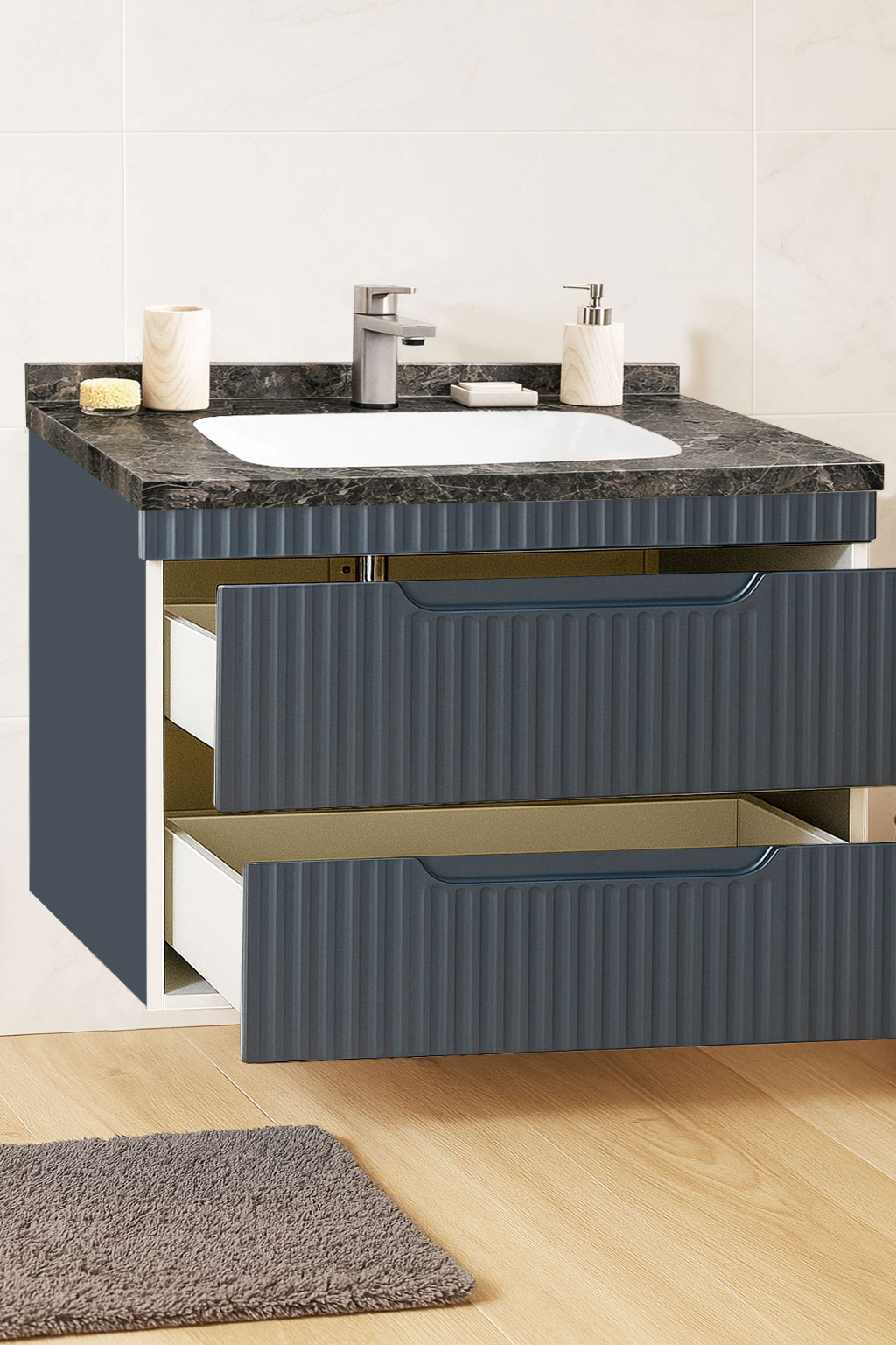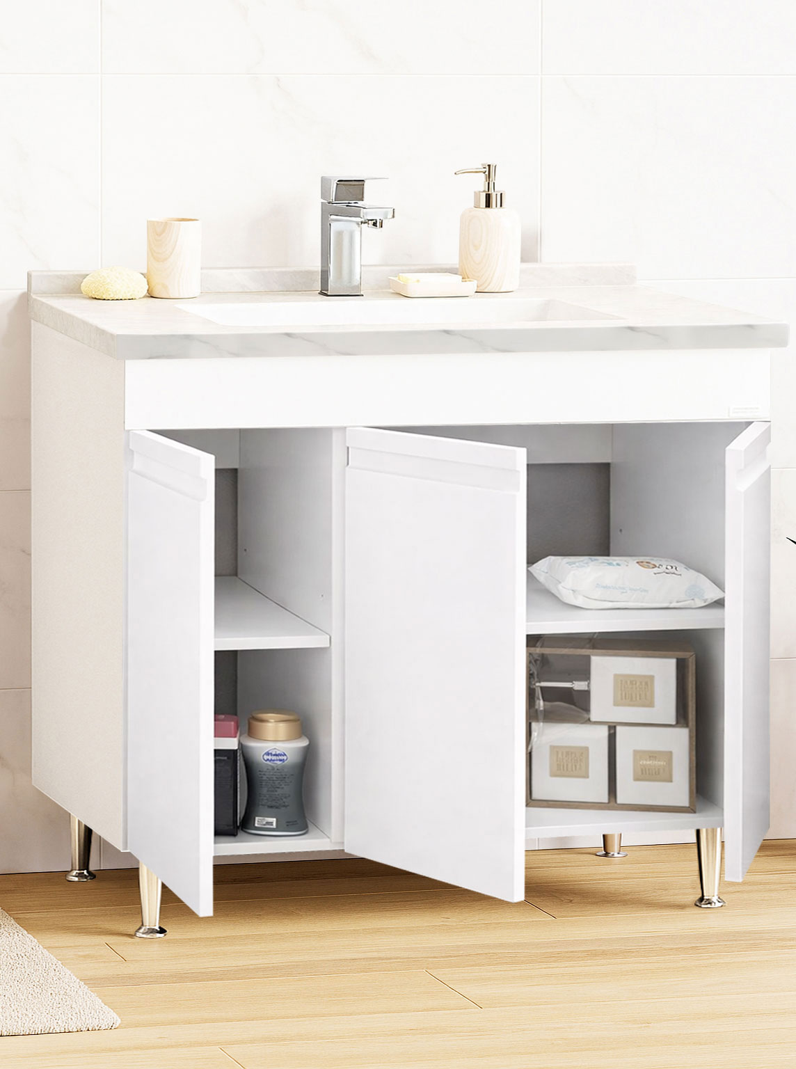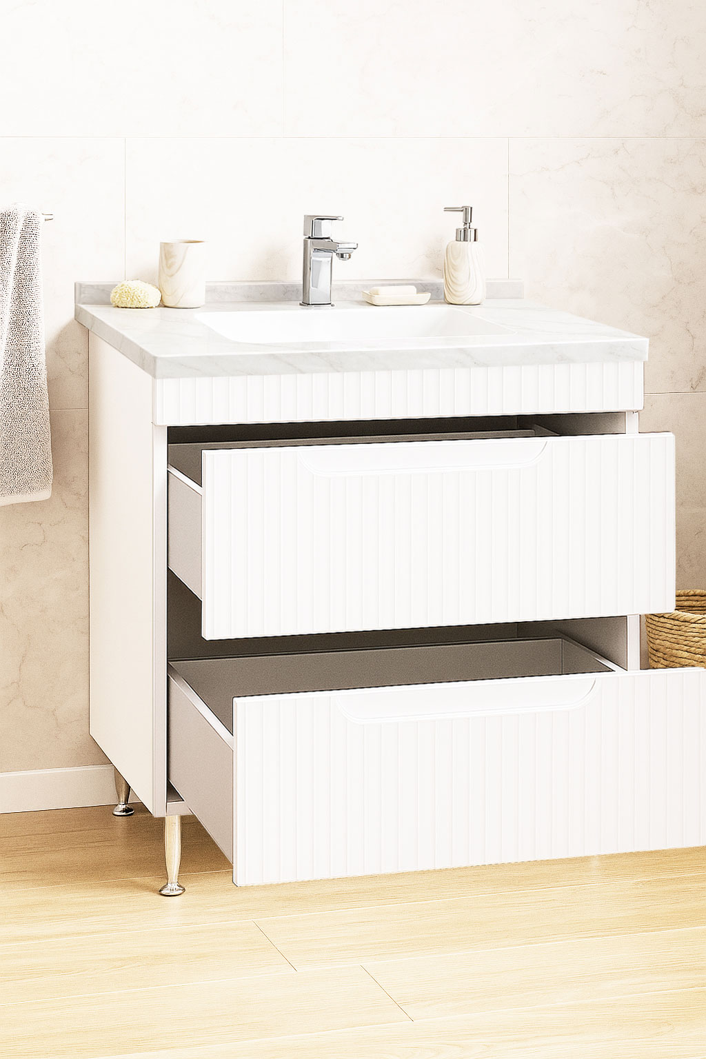 De la mobilier suspendat, la dulapuri spațioase sau oglinzi cu depozitare integrată, vei găsi opțiuni versatile care transformă baia într-un spațiu organizat și elegant.