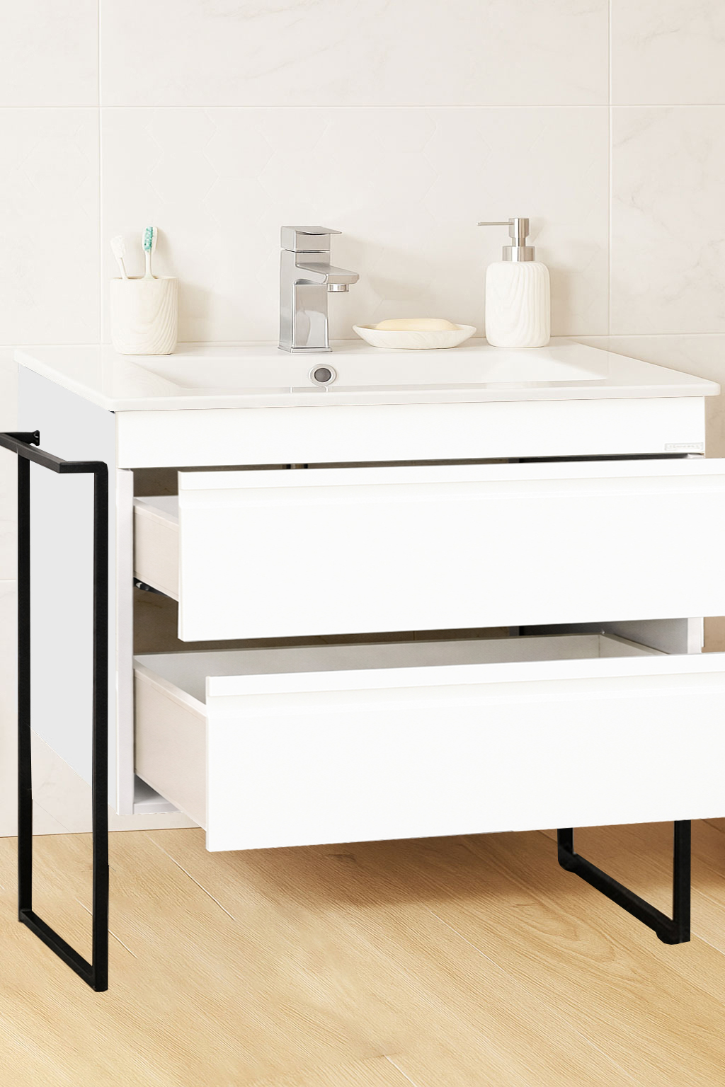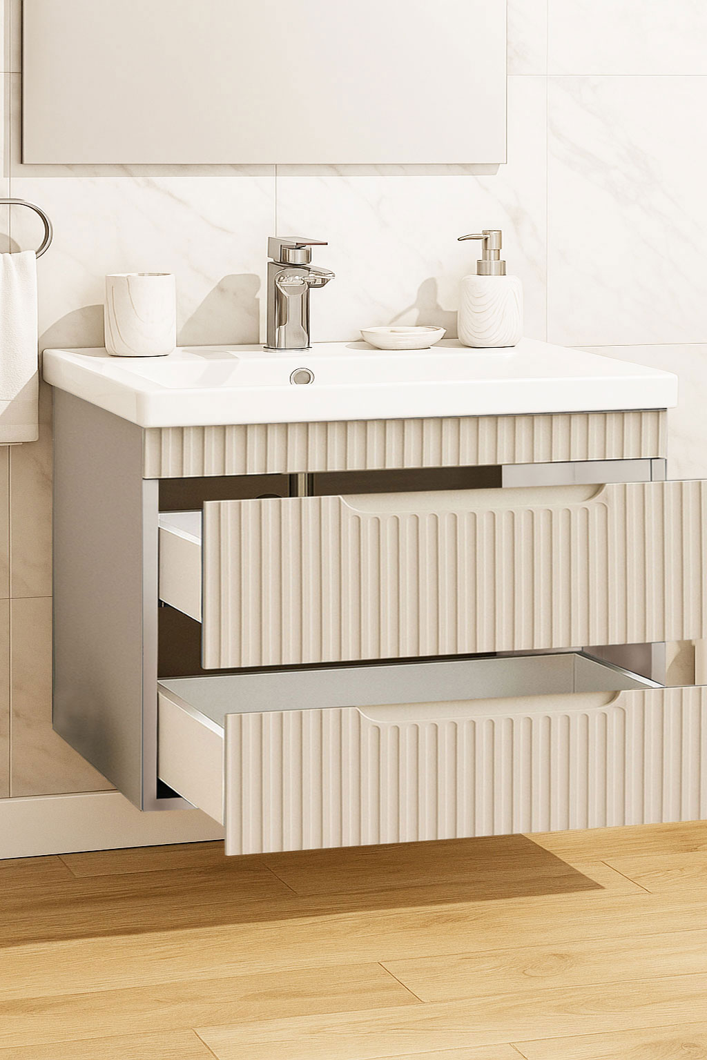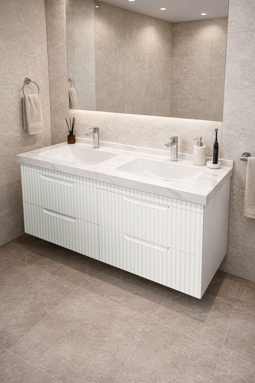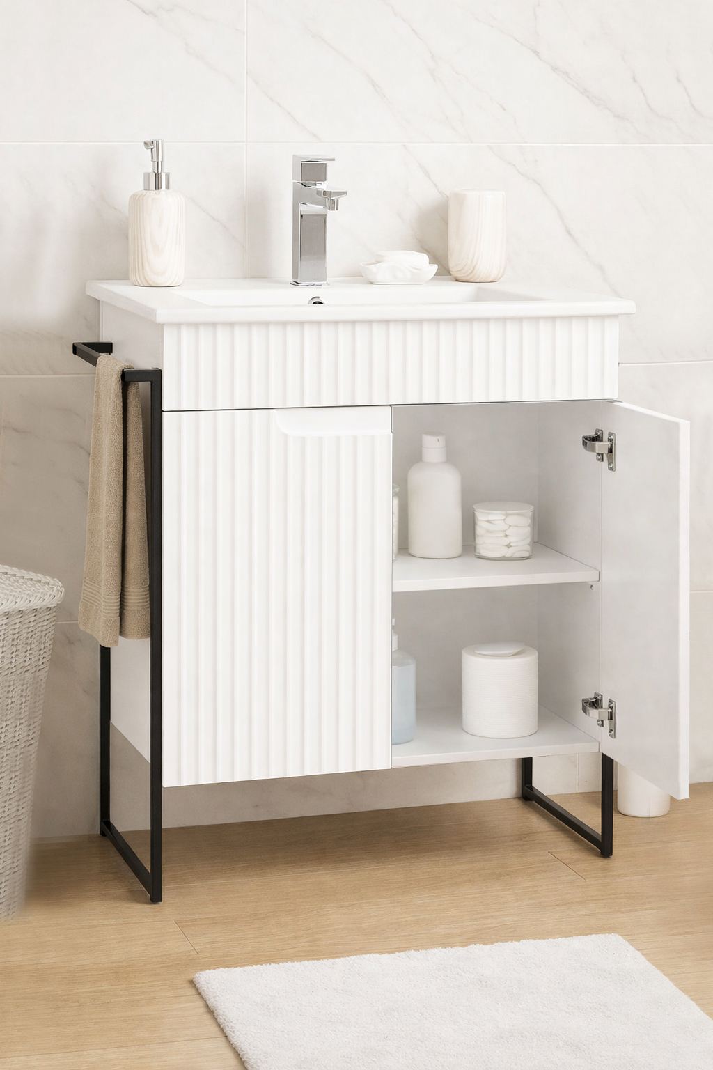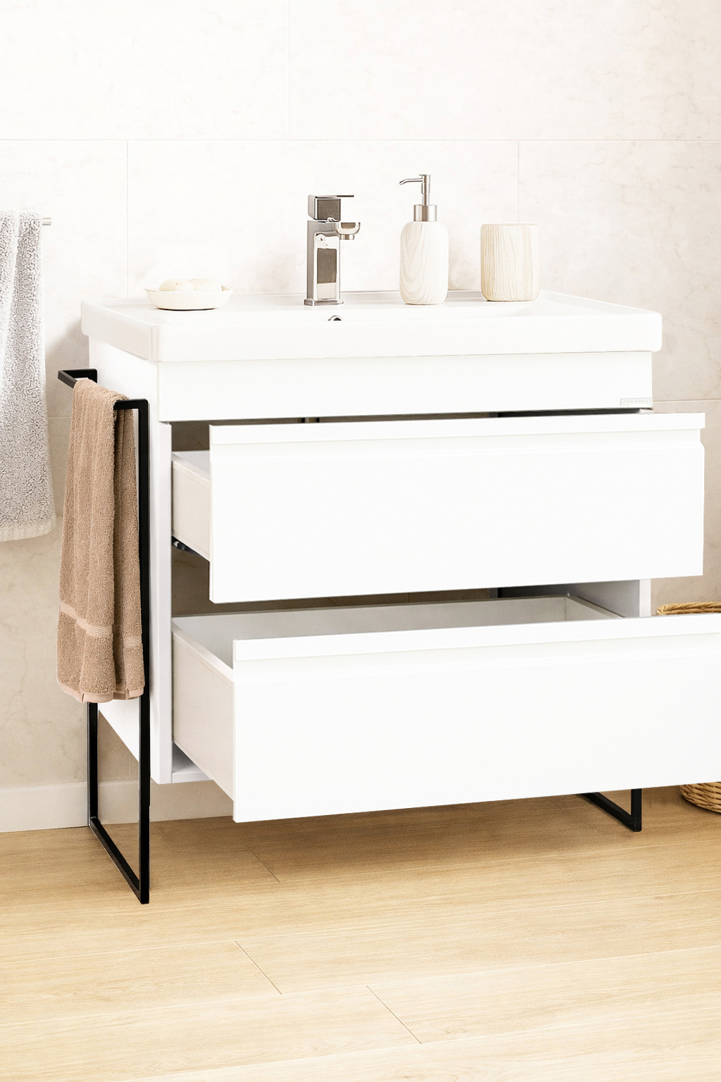 De la mobilier suspendat, la dulapuri spațioase sau oglinzi cu depozitare integrată, vei găsi opțiuni versatile care transformă baia într-un spațiu organizat și elegant.