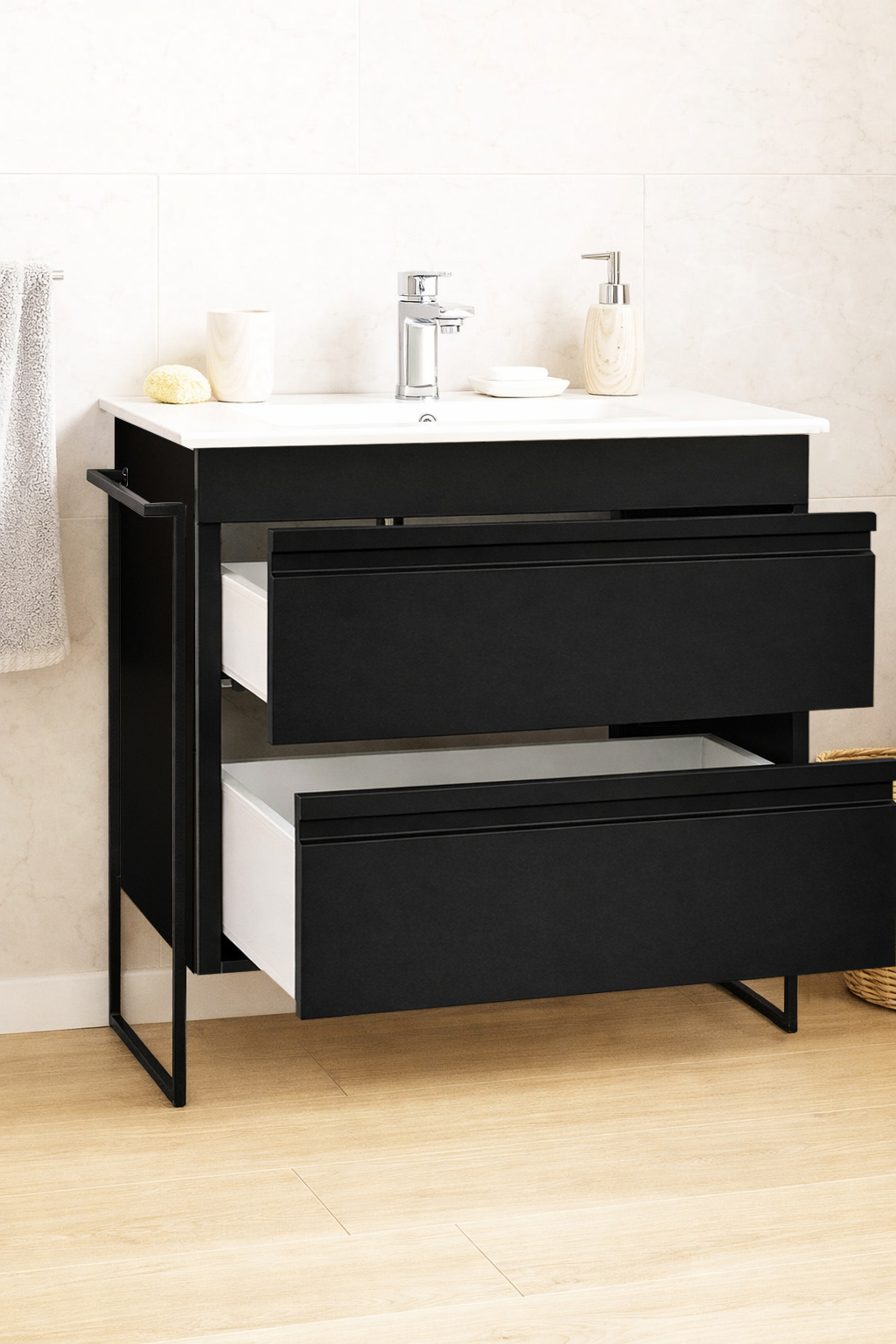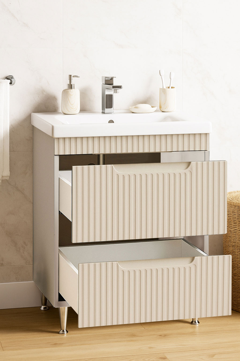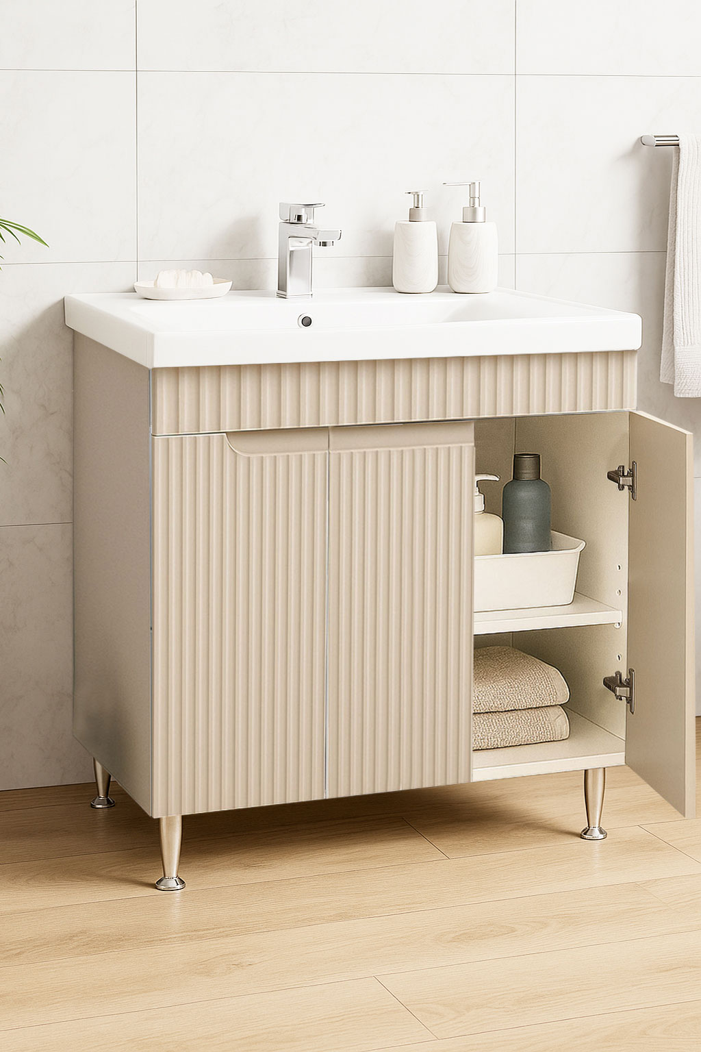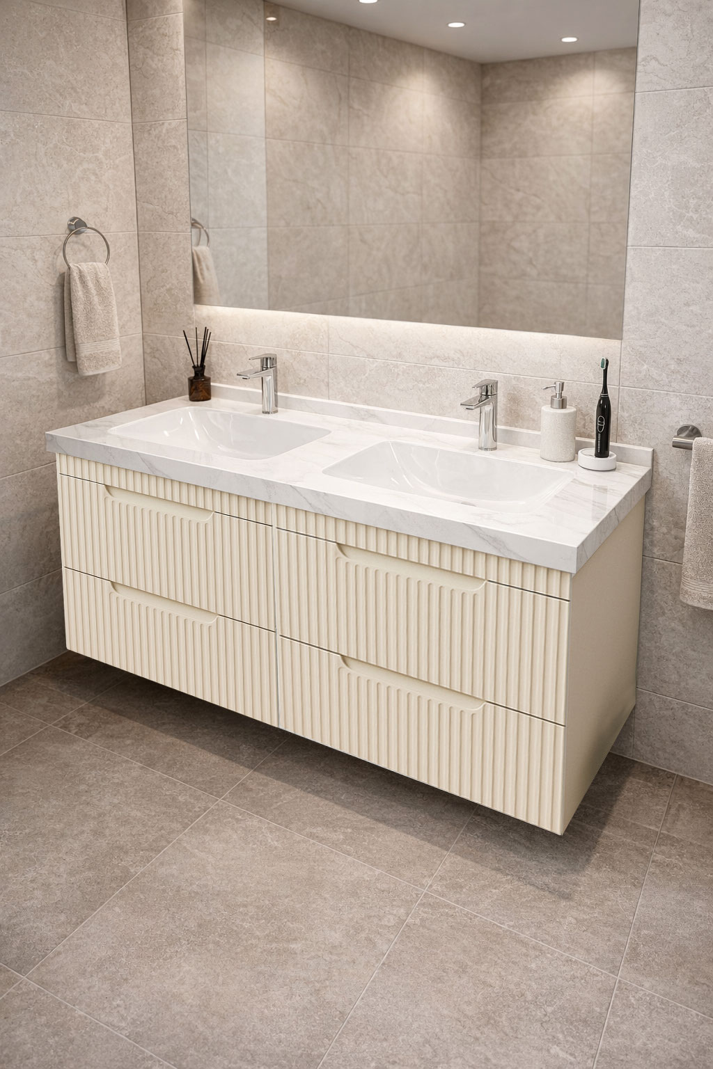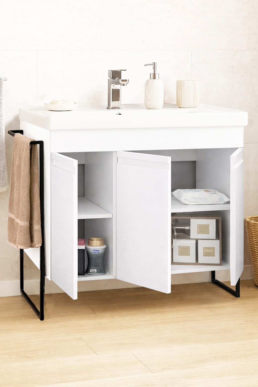 De la mobilier suspendat, la dulapuri spațioase sau oglinzi cu depozitare integrată, vei găsi opțiuni versatile care transformă baia într-un spațiu organizat și elegant.