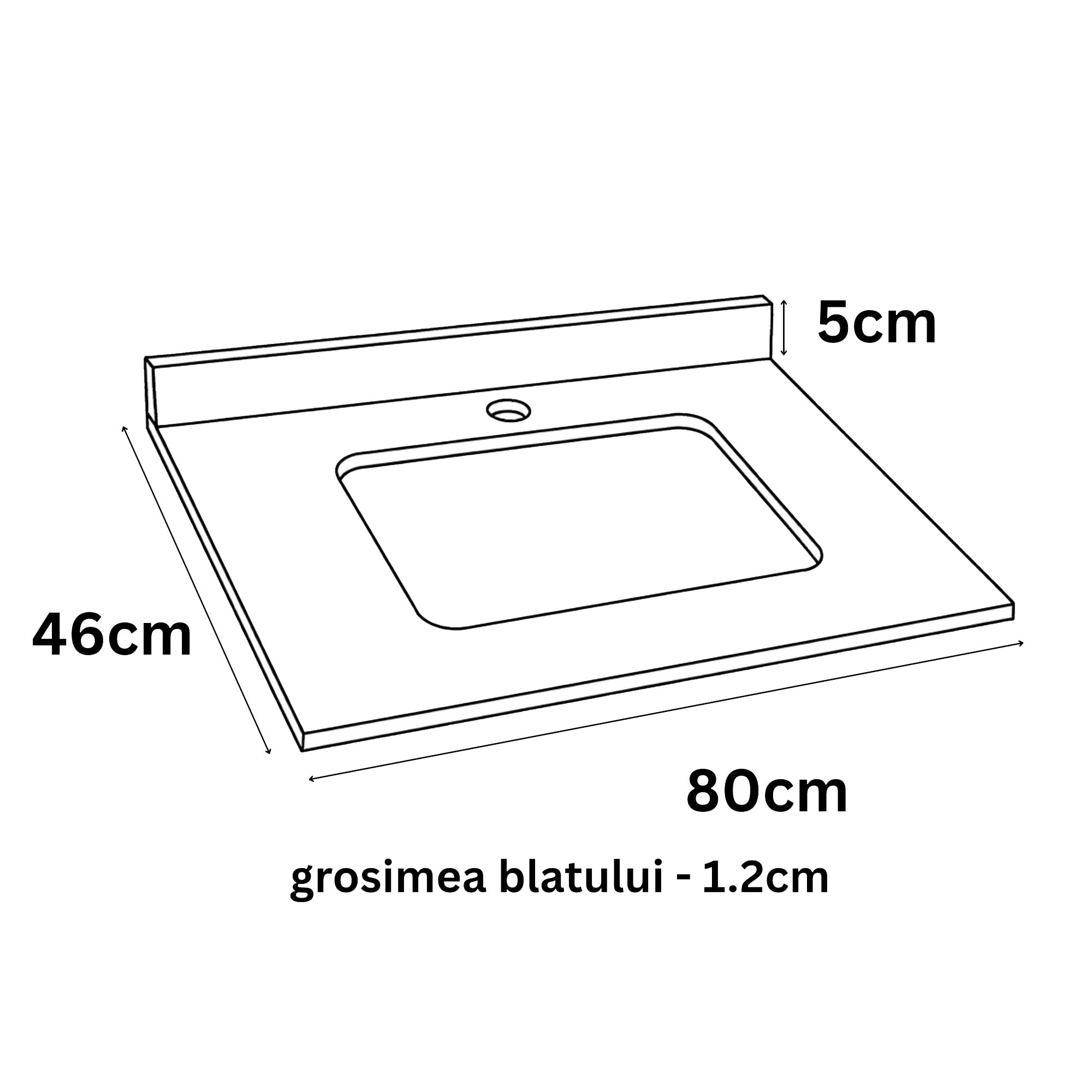 Dimensiuni totale: L = 80cm | H = 1.2cm | l = 46cm