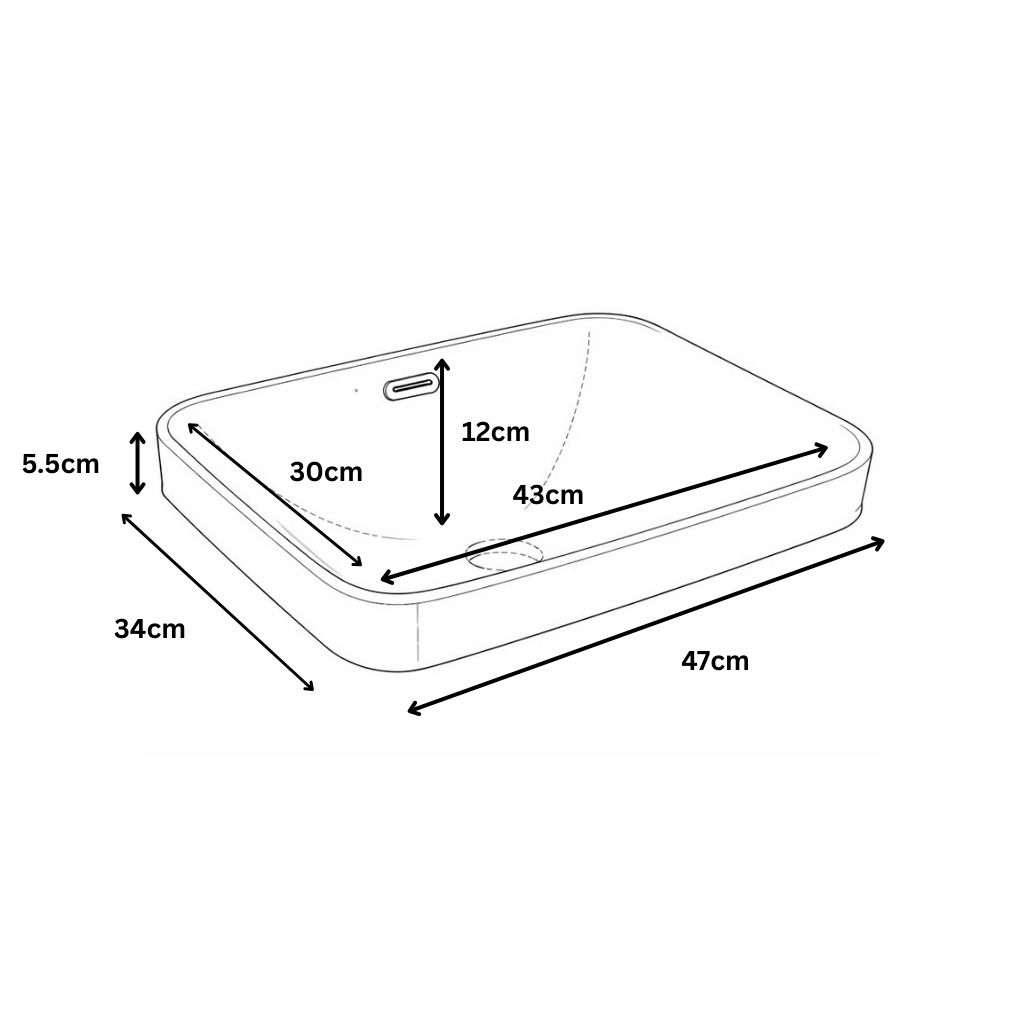 Dimensiuni totale: L = 47cm | H = 16cm | l = 34cm