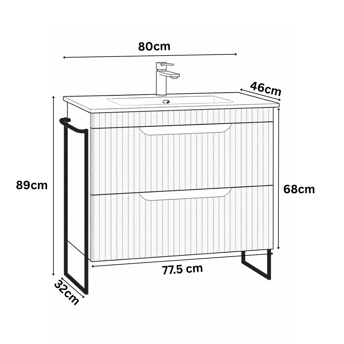 MDF Bathroom Furniture and Sink, Series 033, Drawers, Metal Frame, 80cm, Black