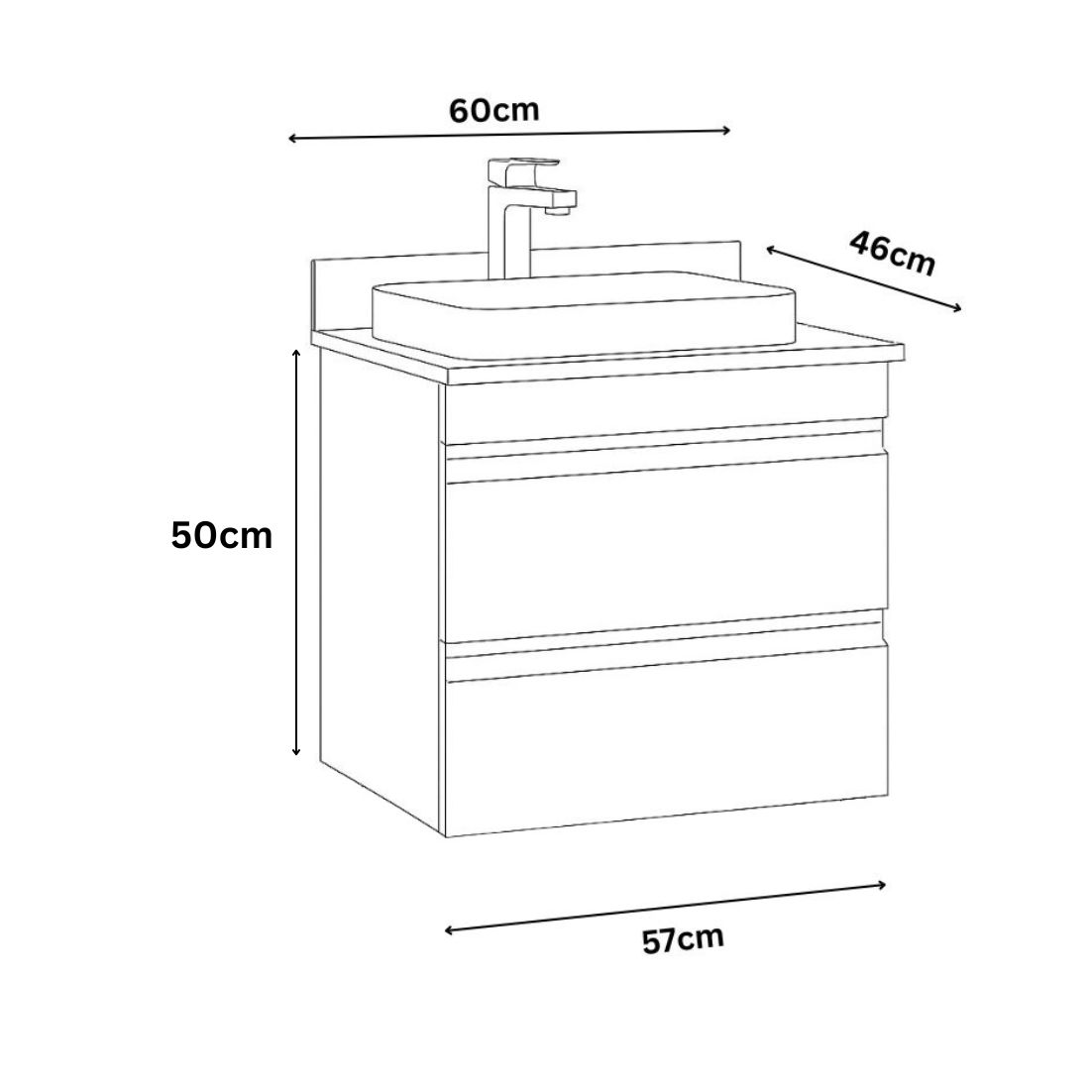 MDF Bathroom Furniture with Composite Top and Ceramic Sink, Series 686, Suspended, Drawers, 60cm, White