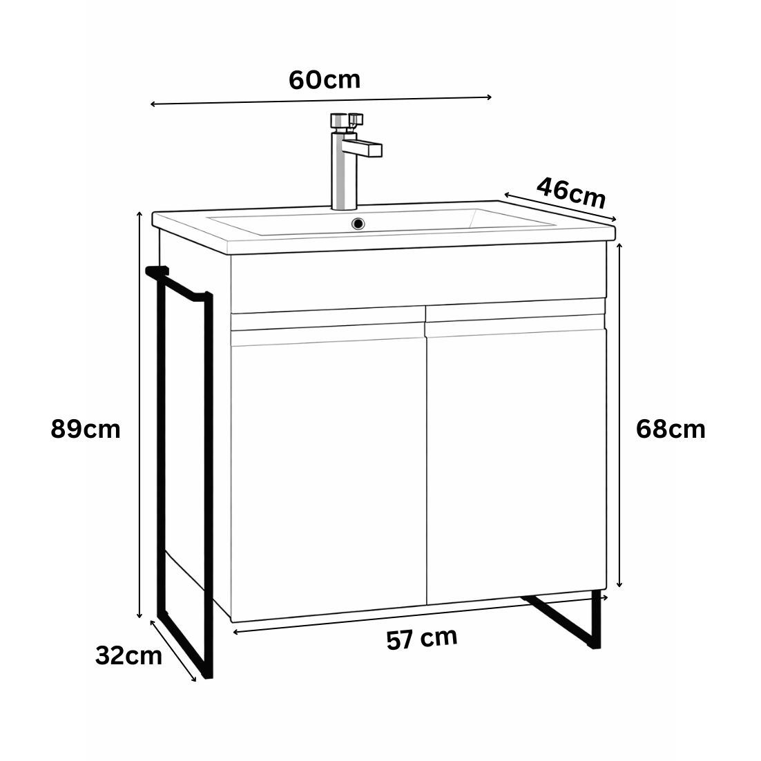 Dimensiuni totale: L = 60cm   |   H = 89cm  |  l = 46cm