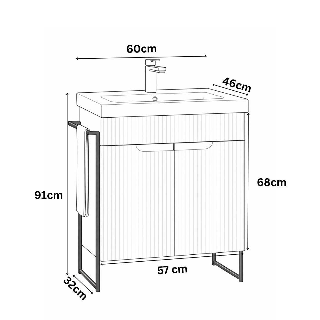 Mobilier Baie MDF Kit și lavoar, Seria 733, Cadru metalic, 60cm, Alb rustic