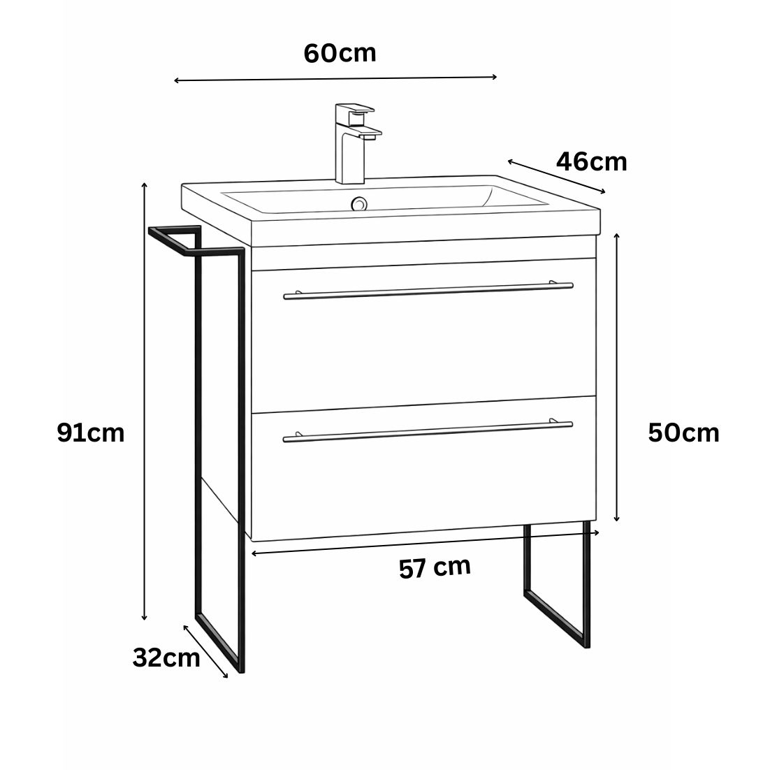 Dimensiuni totale: L = 60cm | H = 91cm | l = 46cm