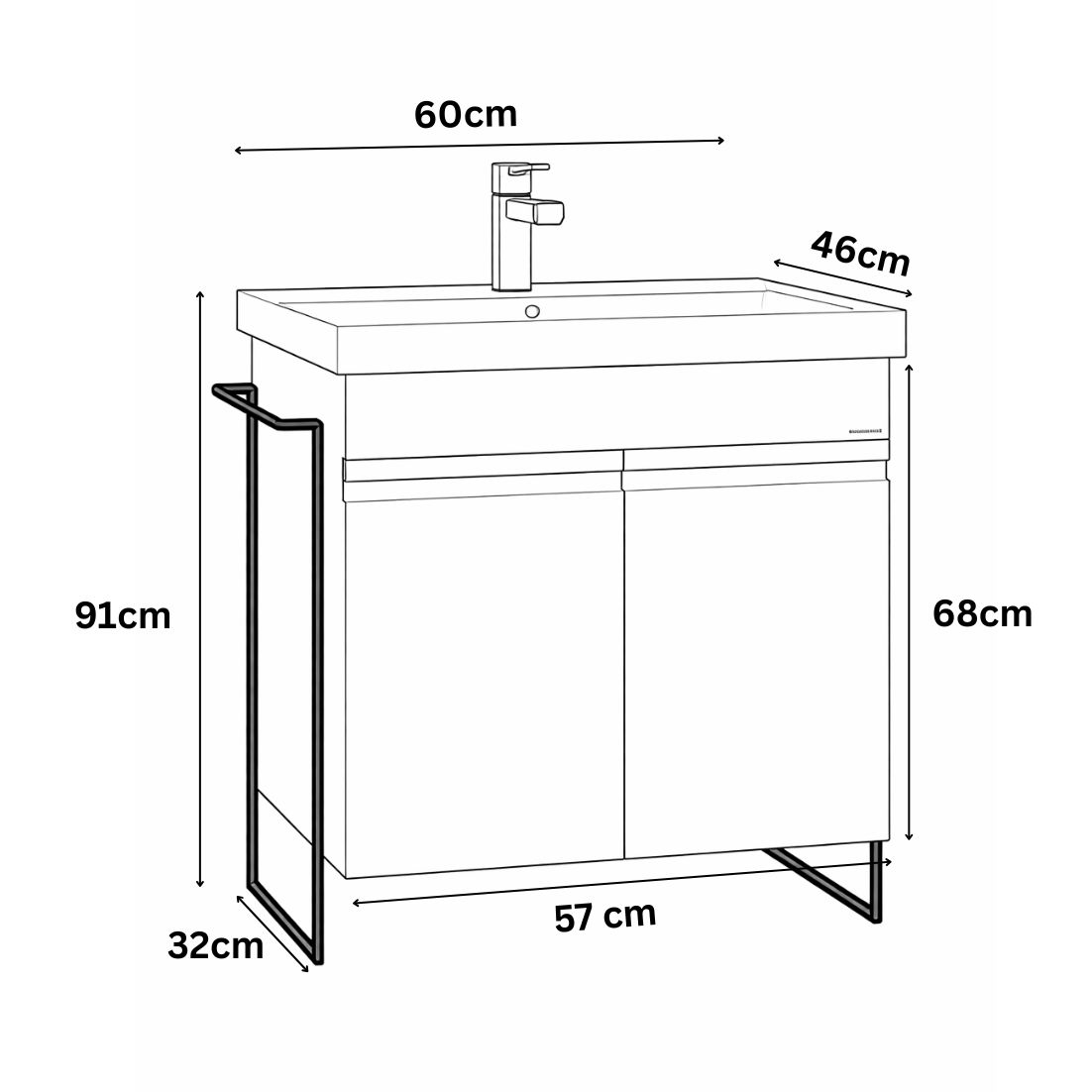 Dimensiuni totale: L = 60cm   |   H = 91cm  |  l = 46cm
