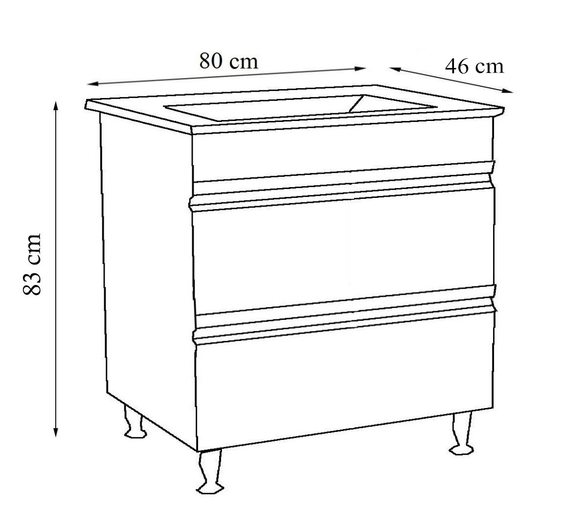 Structura mobilierului este realizată din PAL rezistent, cu lateralii vopsiți, iar sertarele sunt fabricate din MDF vopsit de calitate superioară, oferind un aspect premium și durabilitate în utilizare. Grosimea lateralelor și a sertarelor de 16 mm asigură stabilitate și rezistență în timp, chiar și în condiții de utilizare frecventă.