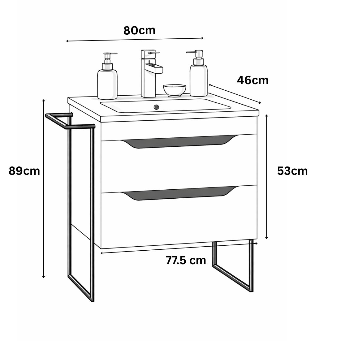 Dimensiuni totale: L = 80cm | H = 89cm | l = 46cm
