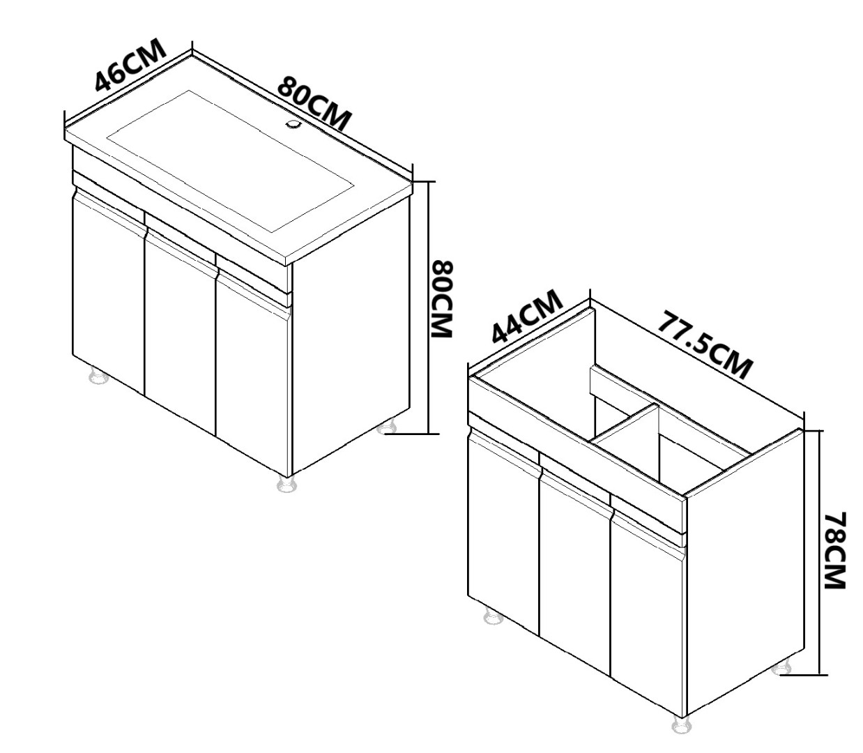 Structura mobilierului de baie este solidă și bine gândită: lateralele sunt realizate din PAL vopsit, iar ușile sunt fabricate din MDF vopsit de calitate superioară, combinație care oferă rezistență sporită la utilizarea zilnică și un aspect premium. Grosimea lateralelor și a ușilor de 16 mm asigură stabilitate și durabilitate în timp, fiind potrivită pentru un mobilier de baie utilizat frecvent.