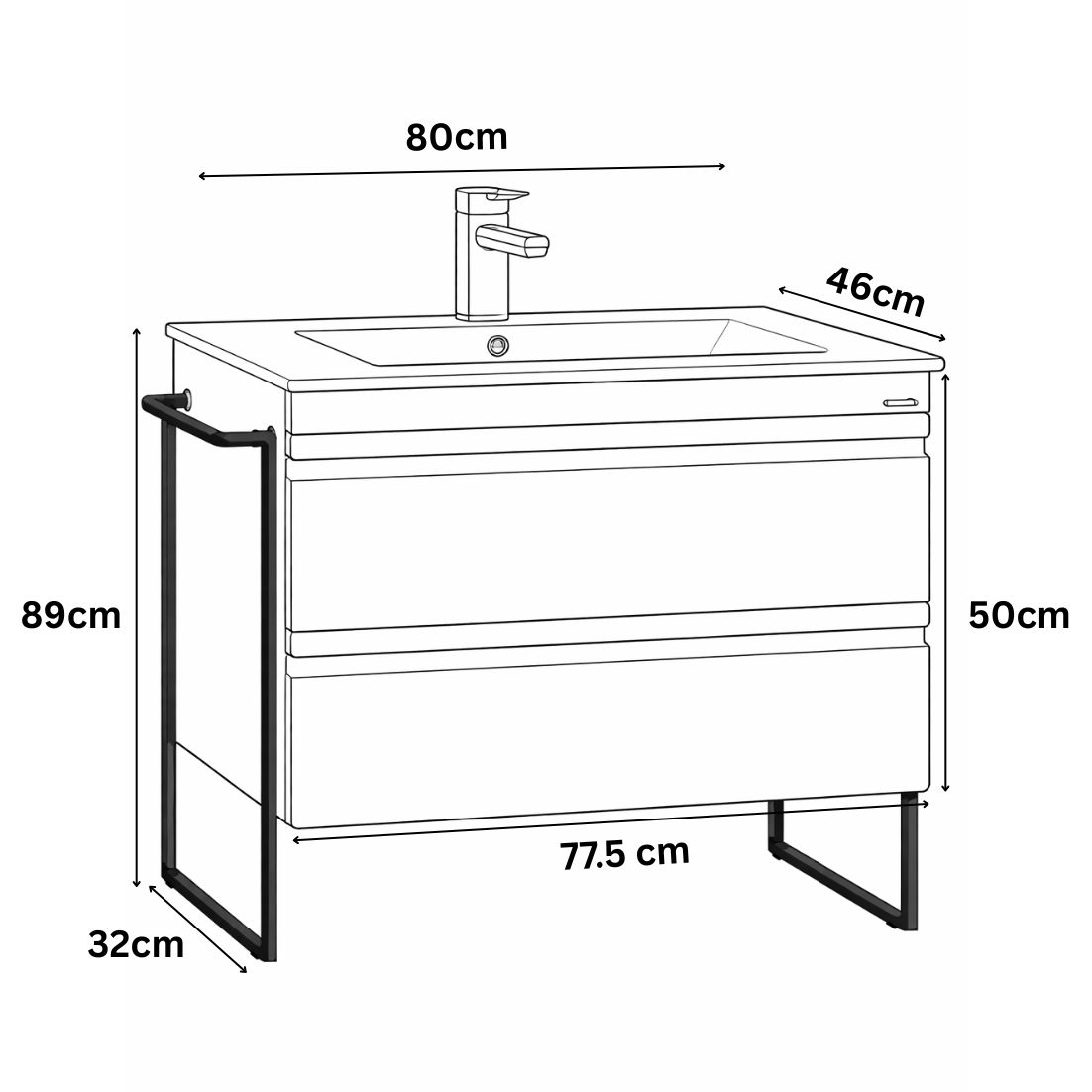 Dimensiuni totale: L = 80cm | H = 89cm | l = 46cm