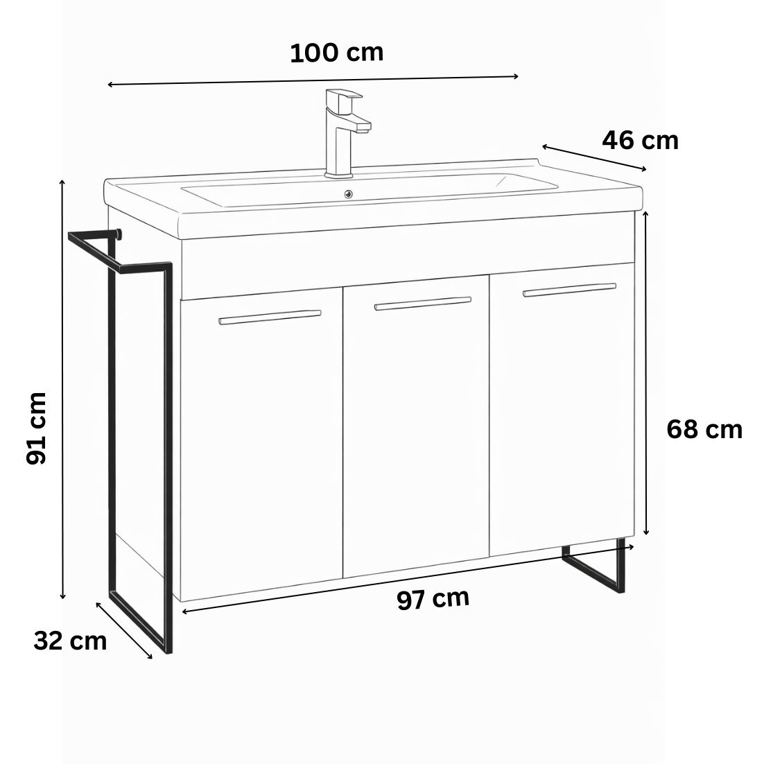 Dimensiuni totale: L = 100cm | H = 91cm | l = 46cm