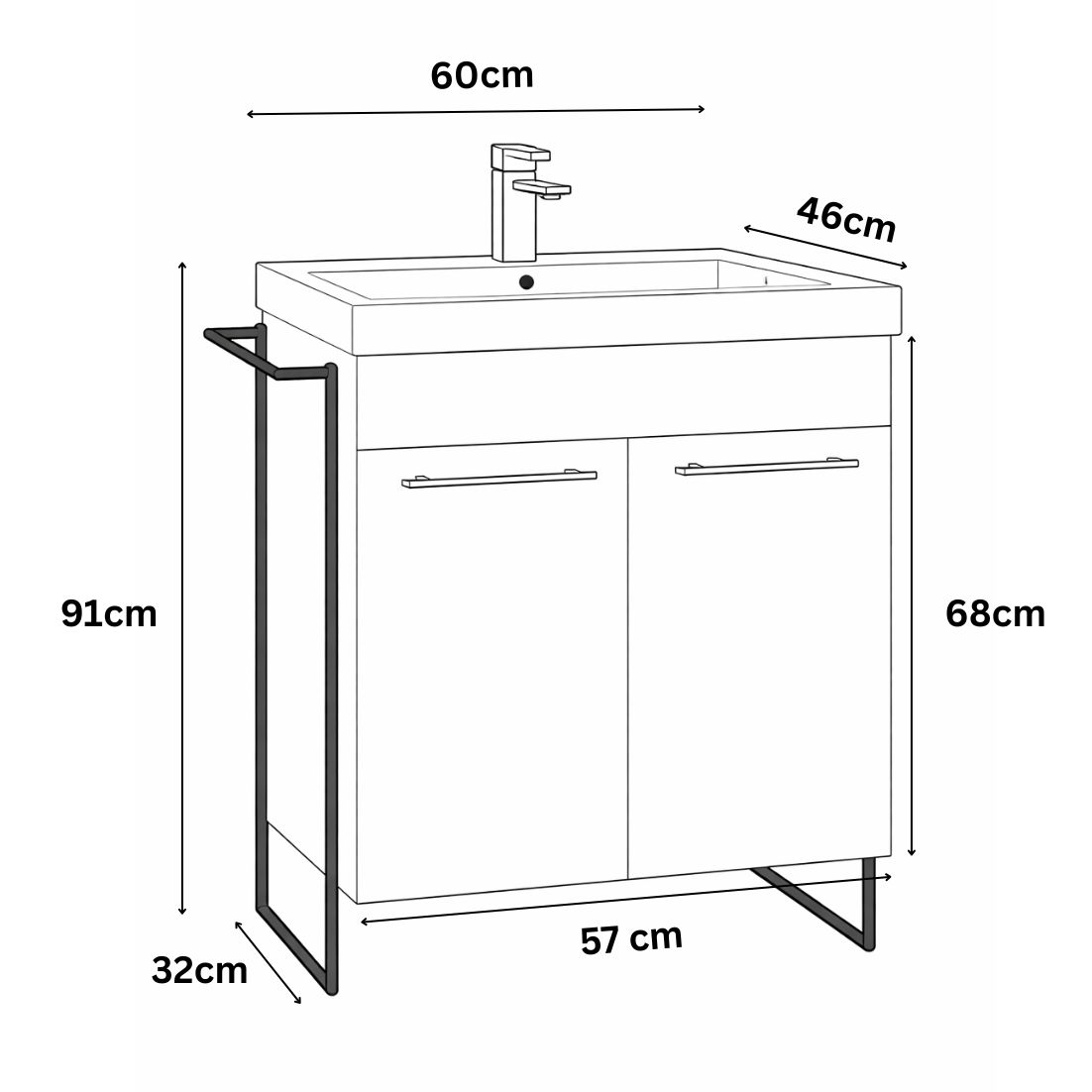 Dimensiuni totale: L = 60cm | H = 91cm | l = 46cm