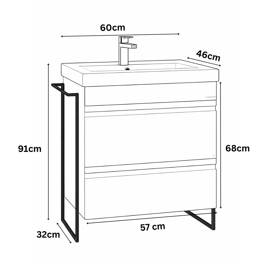 Dimensiuni totale: L = 60cm   |   H = 91cm  |  l = 46cm