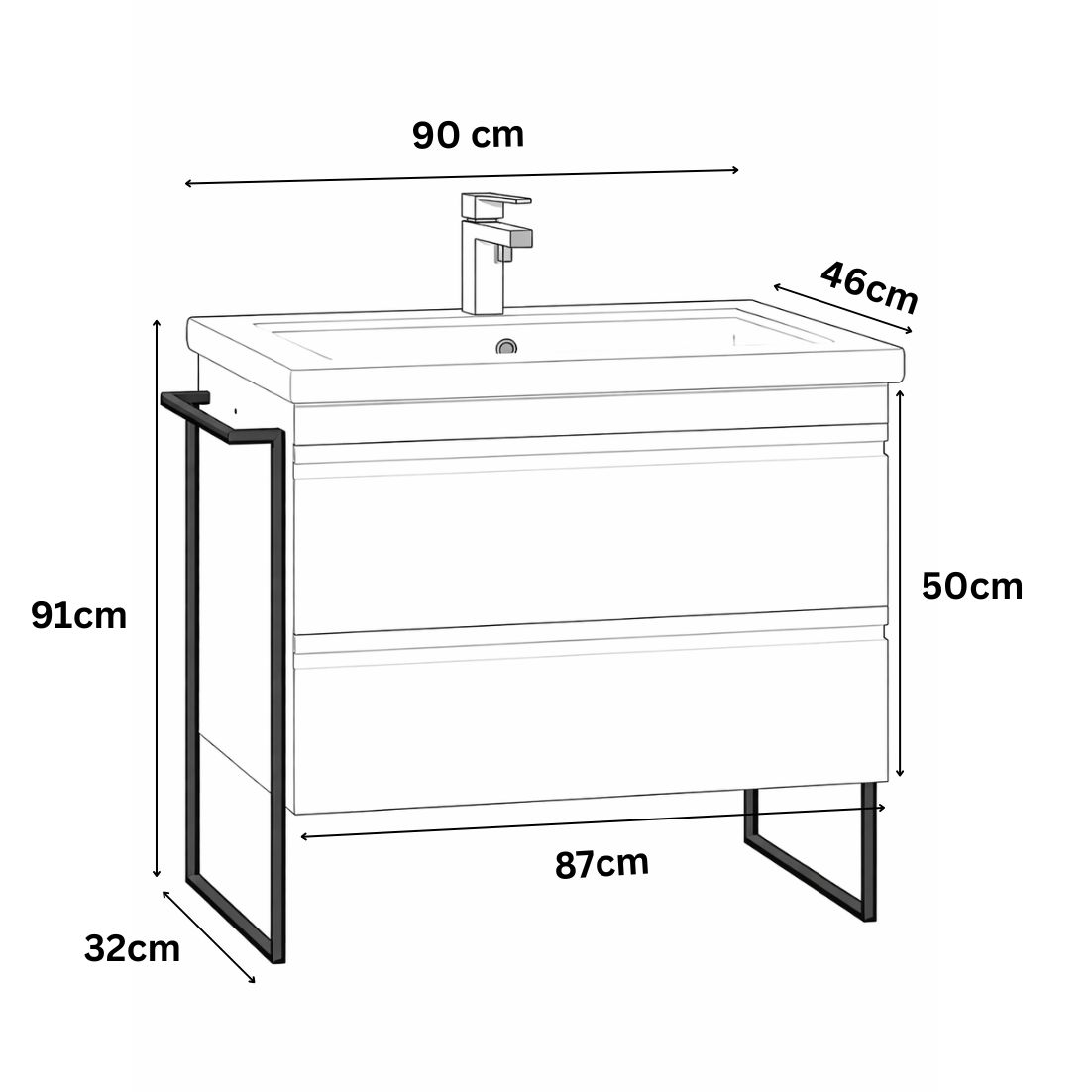 Structura mobilierului de baie este solidă și bine gândită: lateralele sunt realizate din PAL vopsit, iar fețele sertarelor sunt fabricate din MDF vopsit de calitate superioară, combinație care oferă rezistență sporită la utilizarea zilnică și un aspect premium. Grosimea lateralelor și a sertarelor de 16 mm asigură stabilitate și durabilitate în timp, fiind potrivită pentru un mobilier de baie utilizat frecvent.