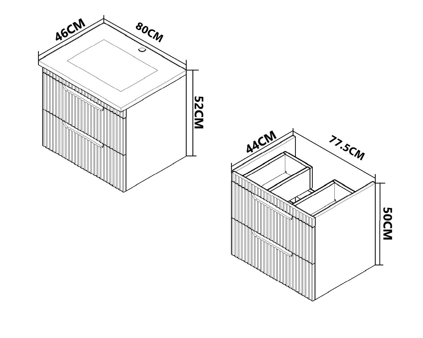 Dimensiuni totale: L = 80cm | H = 52cm | l = 46cm