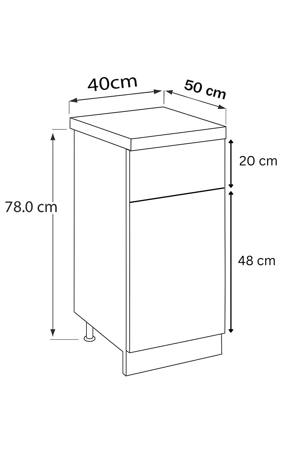 Mobilier bucătărie PAL kit, Germania, Inferior, 1 ușă 1 sertar, 40cm, Antracit