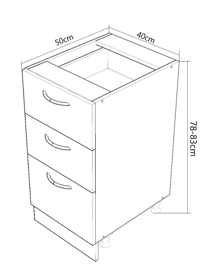 Mobilier bucătărie PAL kit, Germania, Inferior, 3 sertare, 40cm, Sonoma