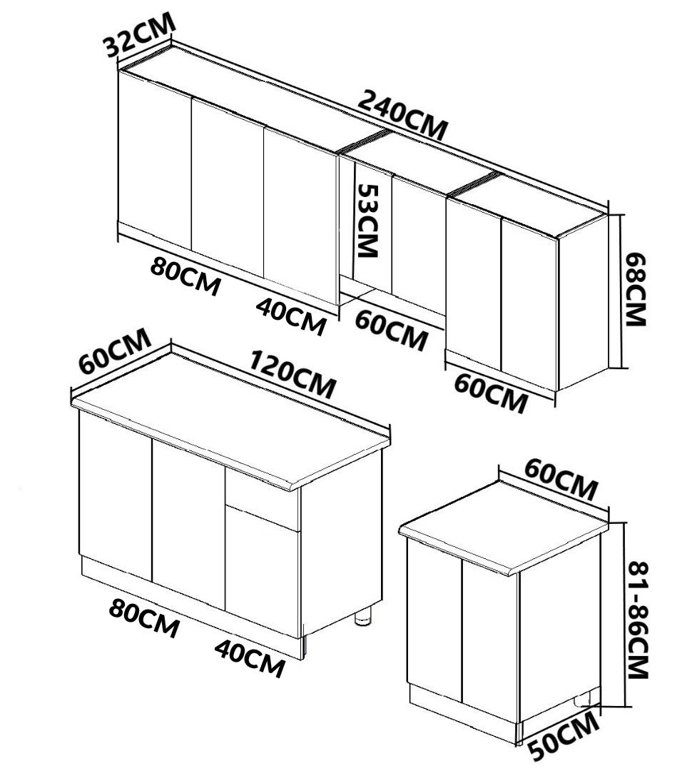 Plinta pentru mascarea picioarelor nu este inclusă în prețul setului