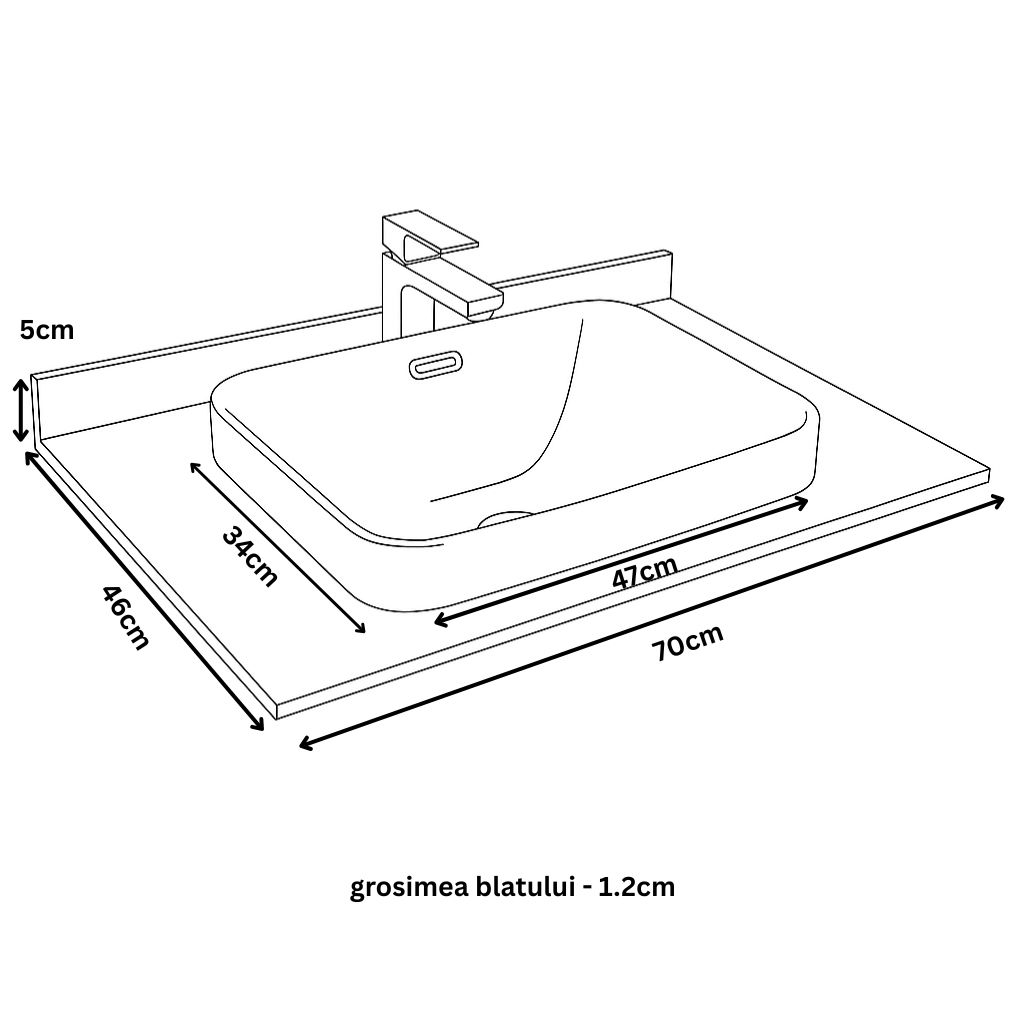 Dimensiuni totale: L = 70cm | H = 1.2cm | l = 46cm